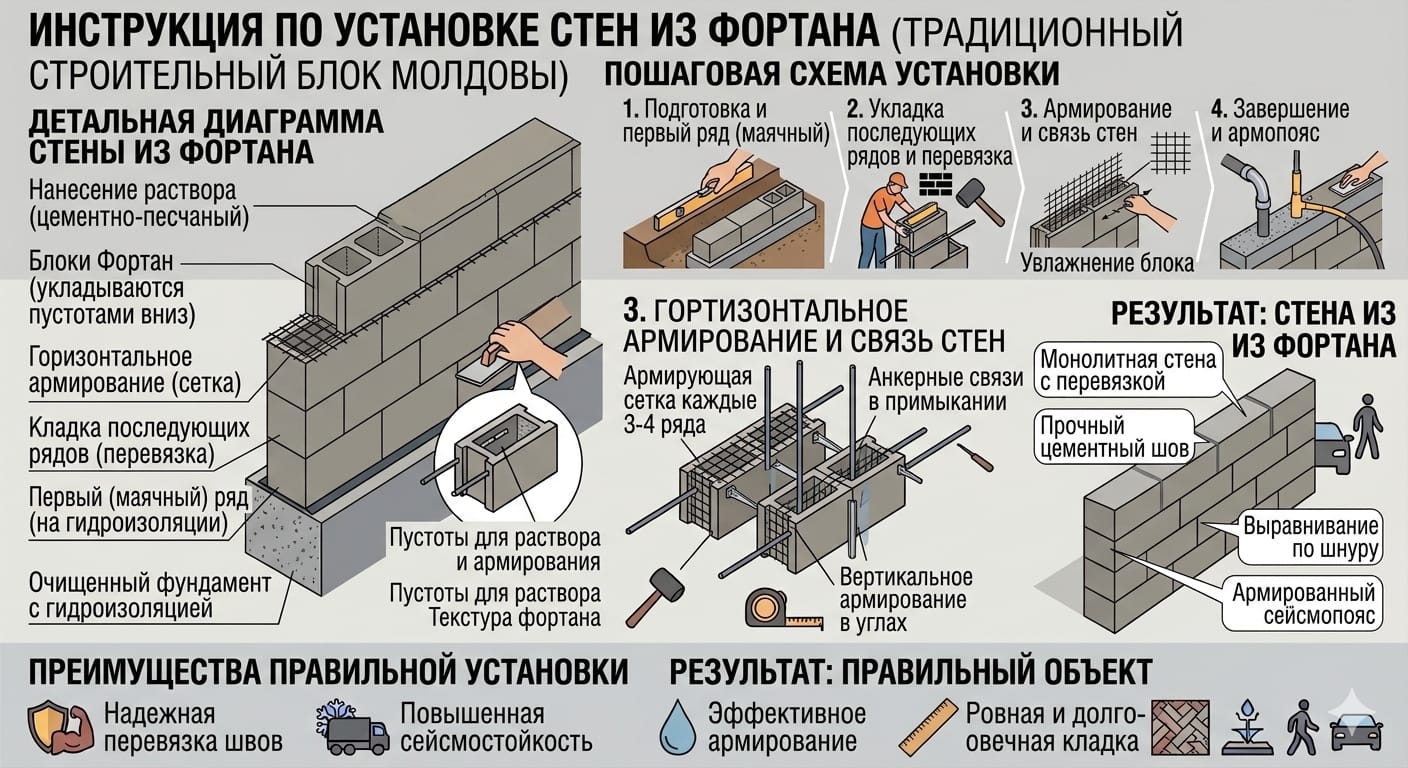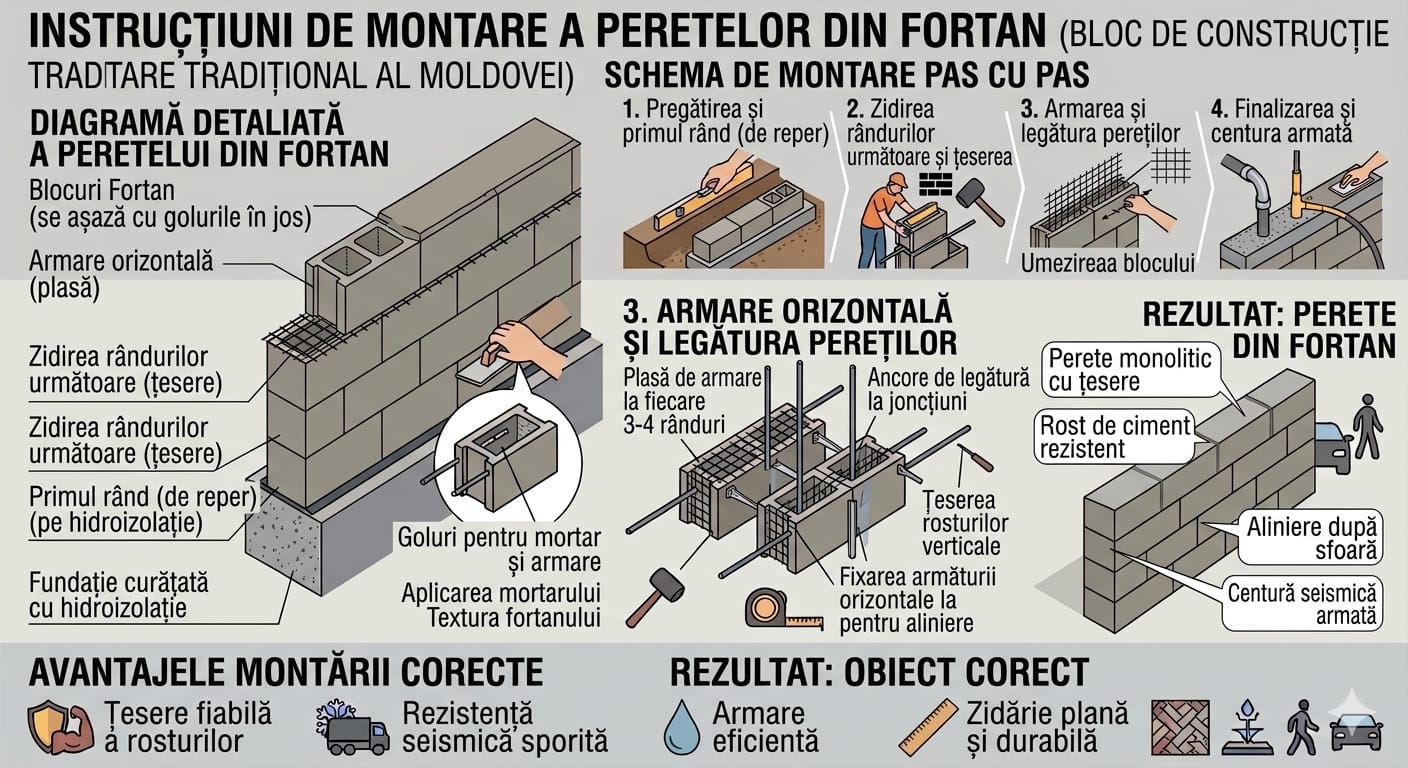 Blocuri din beton tip Fortan 12 cu dimensiunea 12x19x39 cm, potrivite pentru construcția pereților interiori și compartimentări. O soluție practică, rezistentă și eficientă pentru orice proiect.